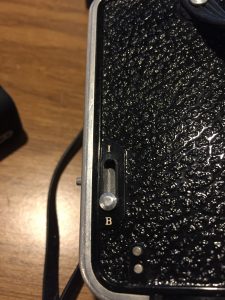 By the way, the exposed terminals for the detachable flash are the two posts at the bottom of the camera body, below and to the right of the ‘I/B’ switch in the picture on the right.