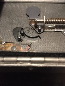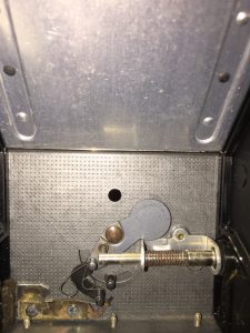 Removing the inside shield exposed the shutter mechanism. This is when I realized that the flash unit saved me the effort of rigging a switch – there was already a switch in place for the flash attachment (lower left side of the body, looking in from the back)